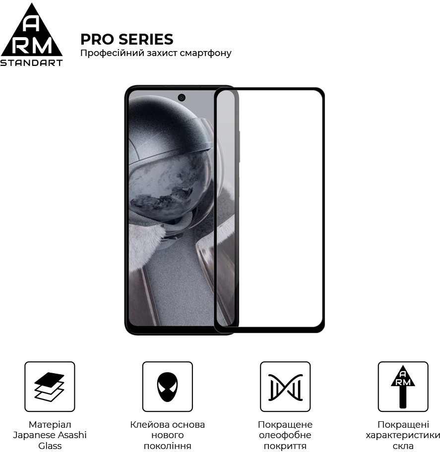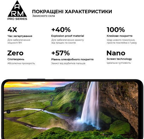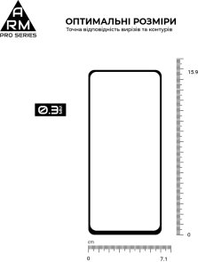 Захисне скло Armorstandart Pro Series має оптимальні габарити та товщину на 0,3 мм. Передбачено вирізи під усі датчики, камери та роз'єми.