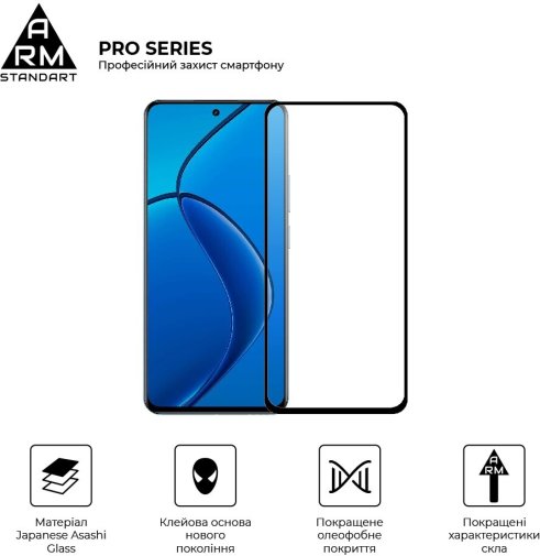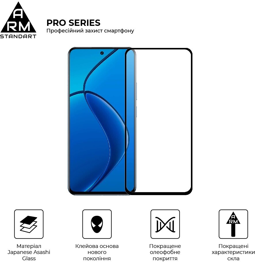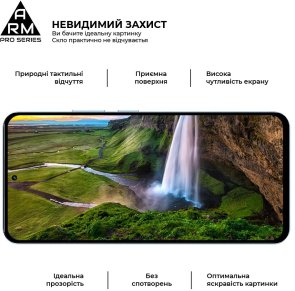 Захисне скло Armorstandart Pro Series має оптимальні габарити та товщину на 0,3 мм. Передбачено вирізи під усі датчики, камери та роз'єми.