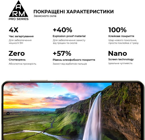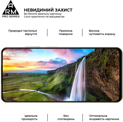 Захисне скло Armorstandart Pro Series має оптимальні габарити та товщину на 0,3 мм. Передбачено вирізи під усі датчики, камери та роз'єми.