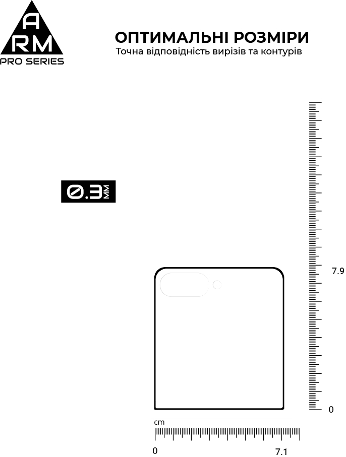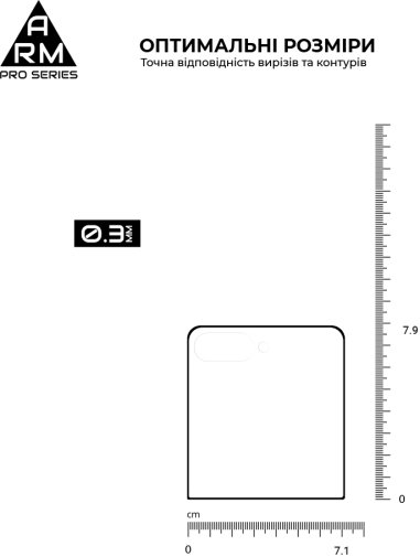 Захисне скло Armorstandart Pro Series має оптимальні габарити та товщину на 0,3 мм. Передбачено вирізи під усі датчики, камери та роз'єми.