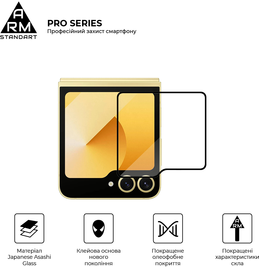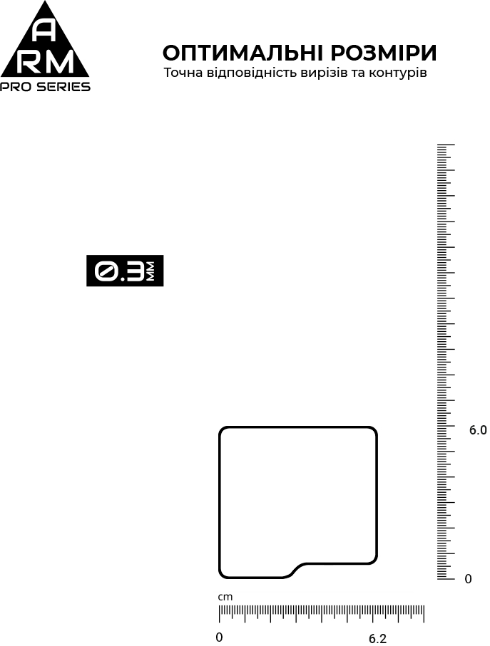 Захисне скло Armorstandart Pro Series має оптимальні габарити та товщину на 0,3 мм. Передбачено вирізи під усі датчики, камери та роз'єми.