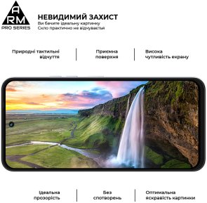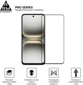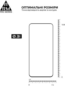 Захисне скло Armorstandart Pro Series має оптимальні габарити та товщину на 0,3 мм. Передбачено вирізи під усі датчики, камери та роз'єми.