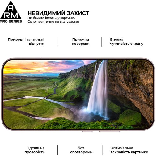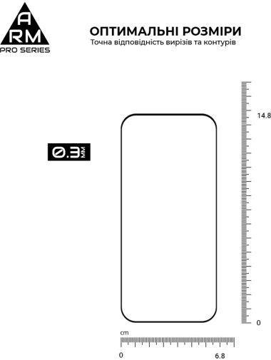 Захисне скло Armorstandart Pro Series має оптимальні габарити та товщину на 0,3 мм. Передбачено вирізи під усі датчики, камери та роз'єми.