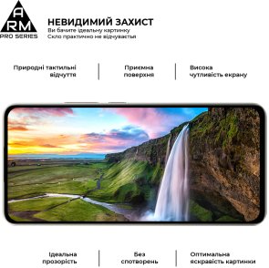 Захисне скло Armorstandart Pro Series має оптимальні габарити та товщину на 0,3 мм. Передбачено вирізи під усі датчики, камери та роз'єми.