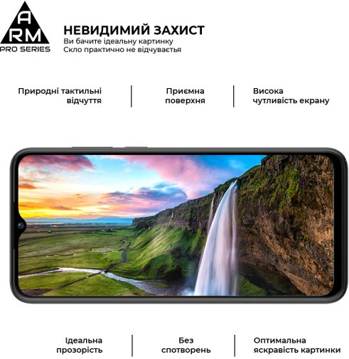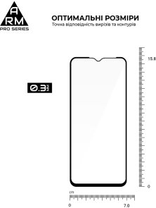 Захисне скло Armorstandart Pro Series має оптимальні габарити та товщину на 0,3 мм. Передбачено вирізи під усі датчики, камери та роз'єми.