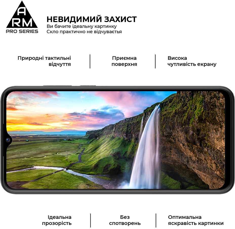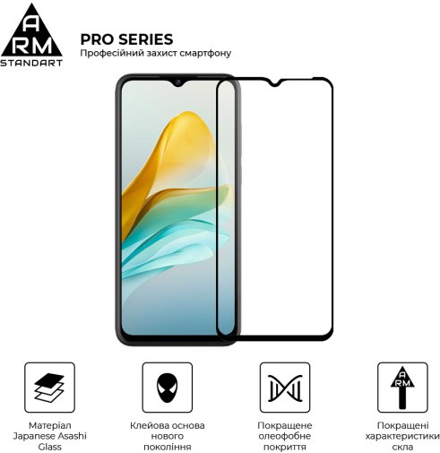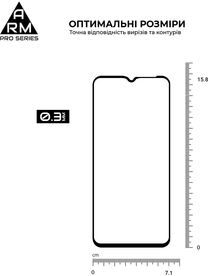 Захисне скло Armorstandart Pro Series має оптимальні габарити та товщину на 0,3 мм. Передбачено вирізи під усі датчики, камери та роз'єми.