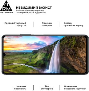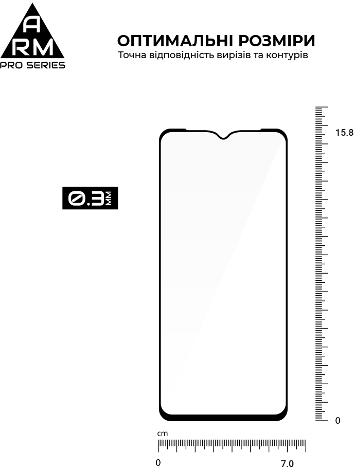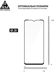 Захисне скло Armorstandart Pro Series має оптимальні габарити та товщину на 0,3 мм. Передбачено вирізи під усі датчики, камери та роз'єми.