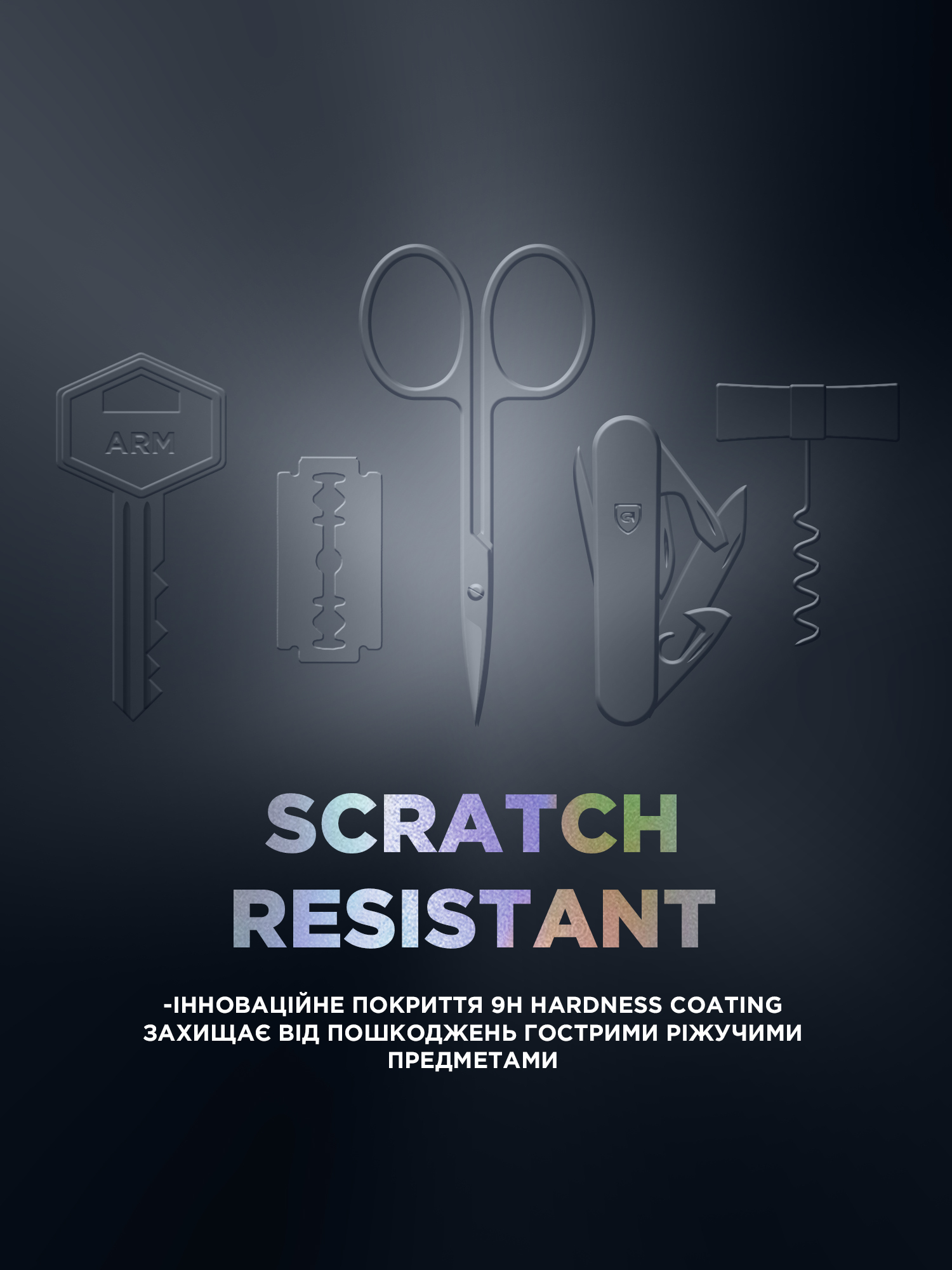 - Hardness coating - додатковий захист від подряпин і гострих предметів;