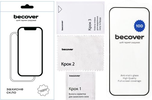 Повне Покриття: Скло 10D має закруглені краї, що дозволяє йому ідеально прилягати до екрану смартфона, забезпечуючи повний захист без проміжків.