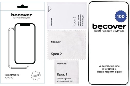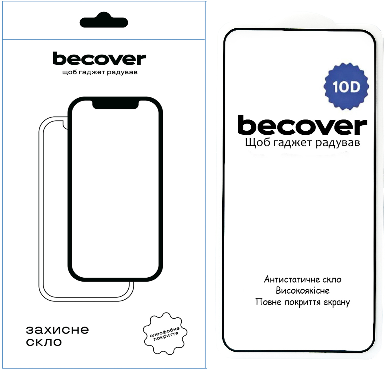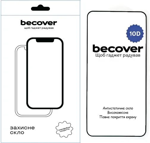 Скло 10D має закруглені краї, що дозволяє йому ідеально прилягати до екрана смартфона, забезпечуючи повний захист без проміжків.