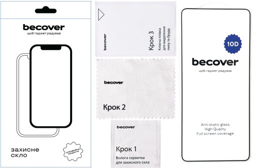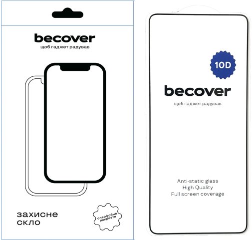 Скло 10D має закруглені краї, що дозволяє йому ідеально прилягати до екрана смартфона, забезпечуючи повний захист без проміжків.