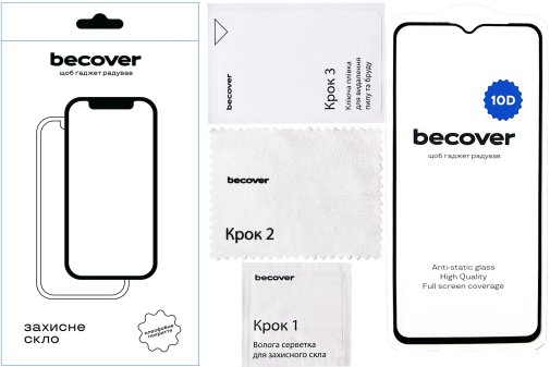 Скло 10D має закруглені краї, що дозволяє йому ідеально прилягати до екрана смартфона, забезпечуючи повний захист без проміжків.
