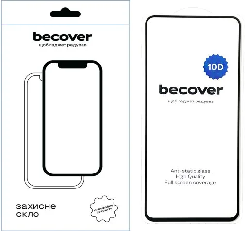 Скло 10D має закруглені краї, що дозволяє йому ідеально прилягати до екрана смартфона, забезпечуючи повний захист без проміжків.