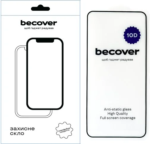 Скло 10D має закруглені краї, що дозволяє йому ідеально прилягати до екрана смартфона, забезпечуючи повний захист без проміжків.