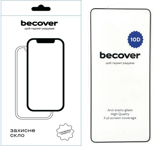 Скло 10D має закруглені краї, що дозволяє йому ідеально прилягати до екрана смартфона, забезпечуючи повний захист без проміжків.