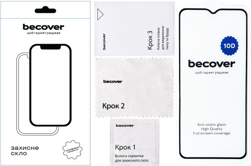 Скло 10D має закруглені краї, що дозволяє йому ідеально прилягати до екрана смартфона, забезпечуючи повний захист без проміжків.
