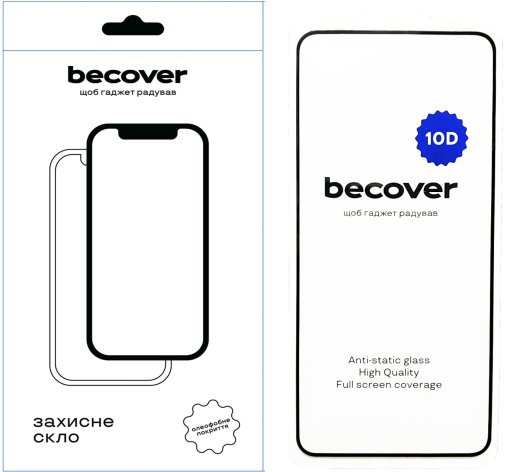 Скло 10D має закруглені краї, що дозволяє йому ідеально прилягати до екрана смартфона, забезпечуючи повний захист без проміжків.