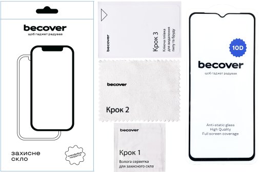 Скло 10D має закруглені краї, що дозволяє йому ідеально прилягати до екрана смартфона, забезпечуючи повний захист без проміжків.