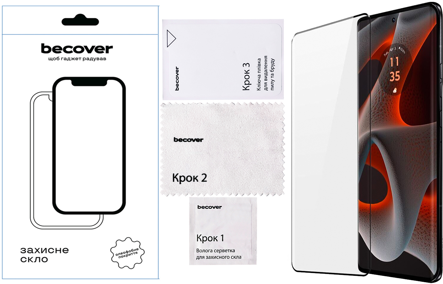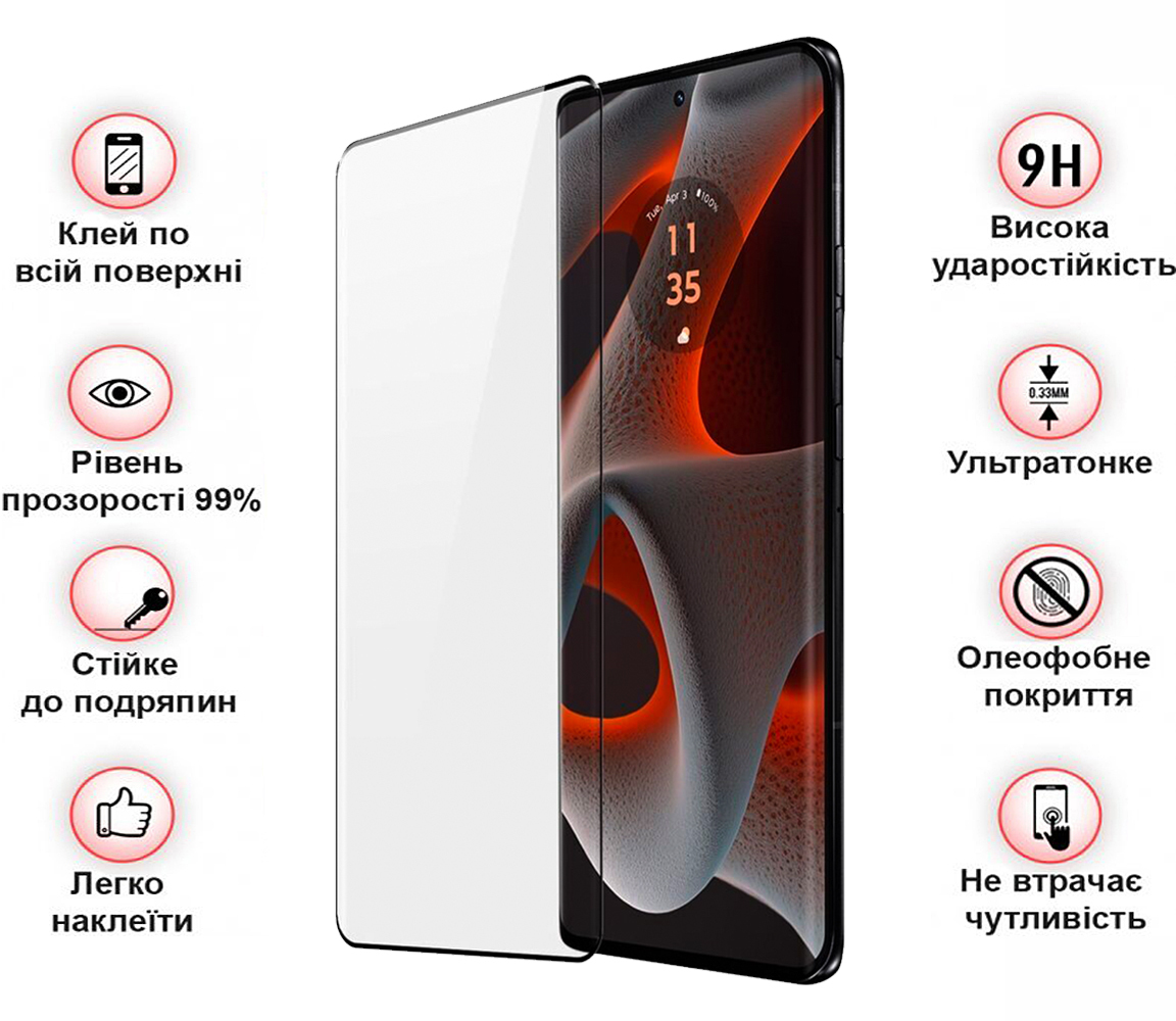 - 3D вигин: Скло ідеально повторює контури екрана, покриваючи всю його поверхню, включаючи вигнуті краї.