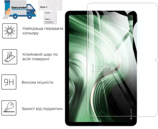 "Надміцне, ультратонке та абсолютно прозоре захисне скло забезпечить збереження екрана вашого планшета. Протектор із загартованого скла принципово відрізняється від традиційних захисних плівок і перевершує їх по ряду ключових характеристик: