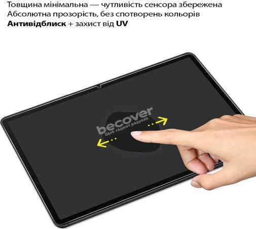 Повністю прозорий, не спотворює кольори, має покриття антивідблиску і фільтр, що не пропускає ультрафіолетові промені. Завдяки олеофобному верхньому шару - спеціальній плівці нанометрової товщини, що відштовхує жир, - екран стійкий до появи забруднень, відбитків пальців і легко чиститься за допомогою мікрофібри