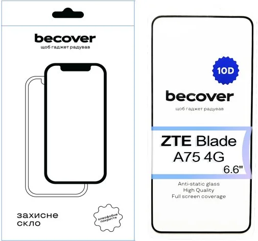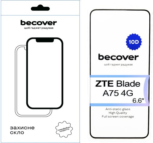 Захисне скло BeCover 10D for ZTE Blade A75 4G Black (713578)