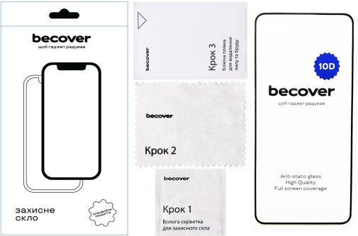 Скло 10D має закруглені краї, що дозволяє йому ідеально прилягати до екрана смартфона, забезпечуючи повний захист без проміжків.