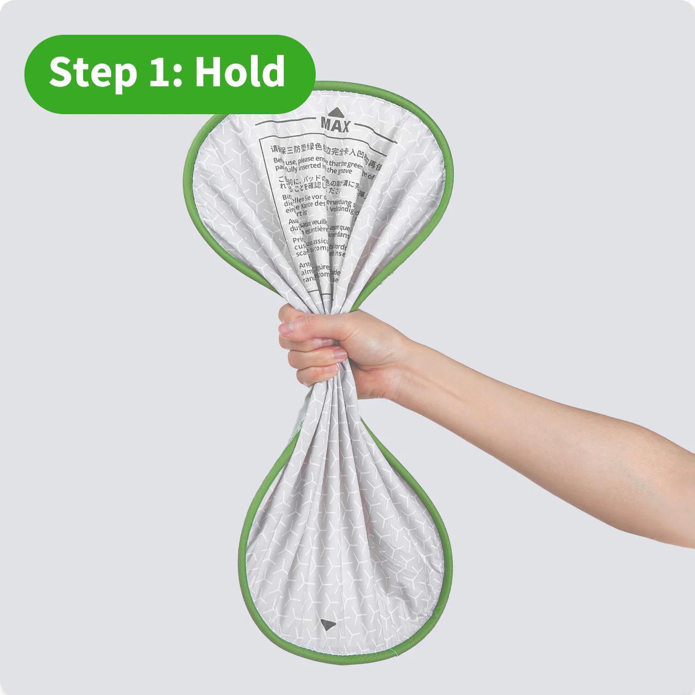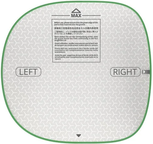 Килимок точно відповідає формі та розмірам внутрішнього циліндра туалету PURAMAX, що дає змогу уникнути протікань навіть у разі активного використання. Його еластичний край щільно фіксується в пазах конструкції, спрямовуючи рідину по краю до центру, де вона безпечно поглинається наповнювачем. Правильна установка гарантує, що зелений край килимка буде повністю прихований.