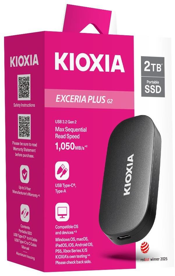 Kioxia Exceria Plus G2 Portable — це компактний зовнішній SSD-накопичувач, створений для тих, кому важлива висока швидкість роботи з даними у поєднанні з мобільністю та універсальністю. Він однаково зручний для роботи з ноутбуком, підключення до смартфона чи планшета, а також для використання з ігровими консолями.