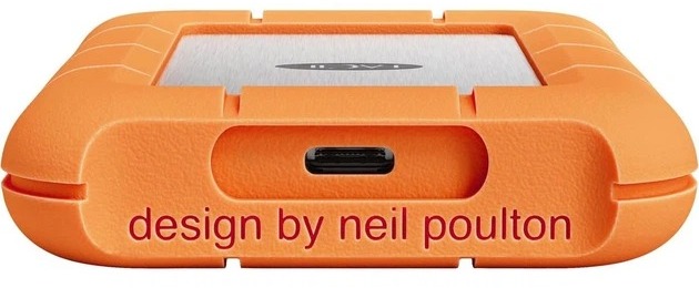 Корпус накопичувача виконаний у класичному стилі LaCie з яскравим помаранчевим силіконовим бампером, який захищає алюмінієвий корпус від ударів. Він має ступінь захисту IP54 від води та пилу, витримує падіння з висоти та тиск. Завдяки компактним розмірам та малій вазі пристрій легко поміщається в кишеню чи сумку, не займаючи багато місця.