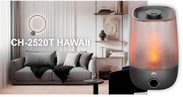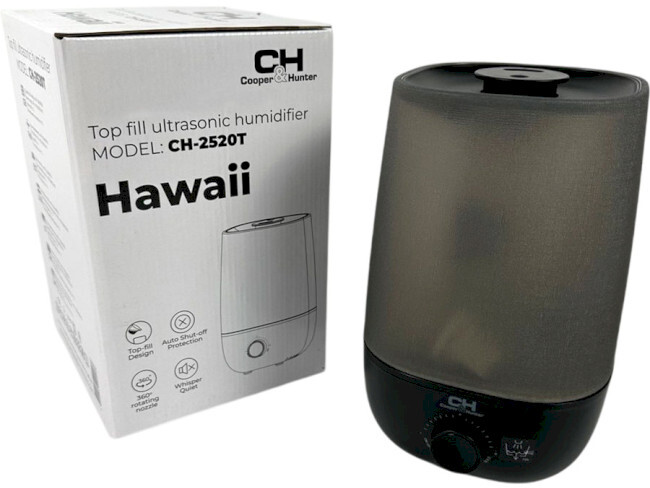 Cooper&Hunter CH-2520WT Hawaii — оптимальний вибір серед недорогих ультразвукових зволожувачів повітря для дому, що поєднують тихий режим роботи, низьке енергоспоживання та зручне автоматичне вимкнення.