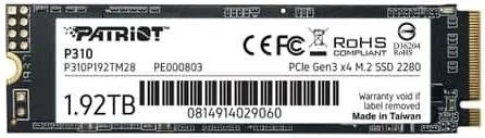 SSD-накопичувач Patriot P310 2280 PCIe 3.0 x4 NVMe 1.92GB (P310P192TM28) SSD-накопичувач Patriot P310 2280 PCIe 3.0 x4 NVMe 1.92GB (P310P192TM28)